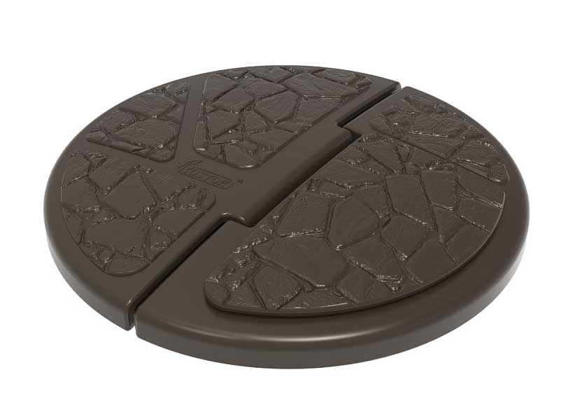 Крышка колодца складного типа отлично справляется со своей основной функцией – защитой колодца от загрязнений. При этом она станет стильным элементом ландшафта на загородном участке благодаря декоративной текстуре под камень.